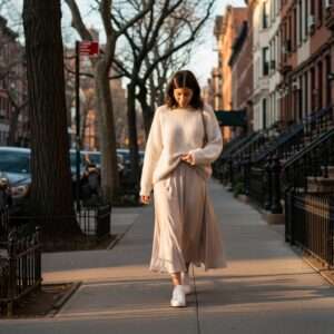 Finish with white sneakers and a beanie for that effortless street-style energy that works well in subway stations or park walks.