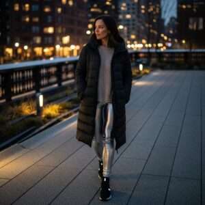 This look is ideal for strolling through Bryant Park’s Winter Village while staying warm and picture-ready.