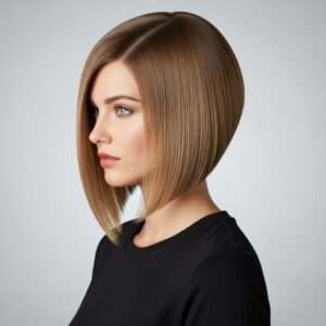 This cut features shorter layers in the back that gradually lengthen toward the front, creating a chic, angled silhouette.