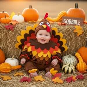 If you want to go all out, dress your baby boy in a full turkey costume.
