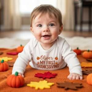 A onesie with your baby’s name or “Baby [Last Name]’s First Thanksgiving” printed on it makes for a keepsake you’ll treasure forever.
