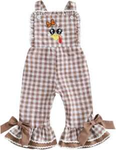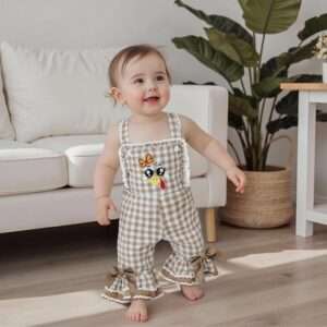 This adorable turkey jumpsuit is a perfect Thanksgiving outfit for your baby or toddler girl, combining festive style with all-day comfort.