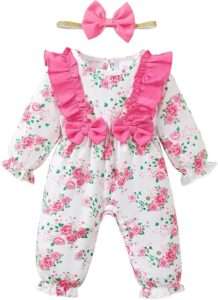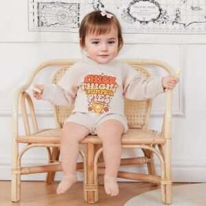 This baby girl romper set is an excellent Thanksgiving outfit choice thanks to its blend of comfort, style, and practicality.