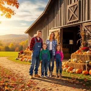 Think denim overalls for the kids, flannel shirts for dad, and a flowy plaid dress with boots for mom.