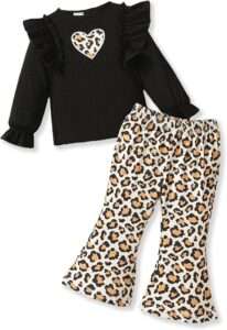 This adorable two-piece flare pants set is a stylish and comfortable choice for your little girl’s Thanksgiving outfit.