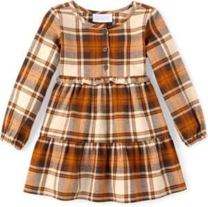 This plaid flannel dress is a wonderful Thanksgiving choice for kids, combining cozy comfort with festive style.