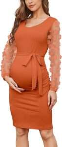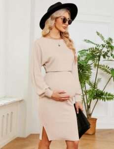 This maternity sweater dress is an excellent Thanksgiving outfit choice for pregnant women because its ultra-soft, warm, and stretchy fabric keeps you cozy and comfortable throughout the day.