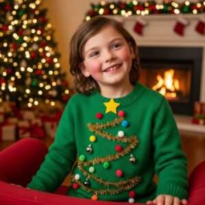 These 14 DIY ugly Christmas sweaters for kids are easy to make, colorful, and perfect for school parties, family photos, or holiday competitions.