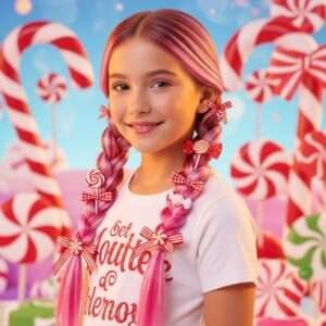 Add small candy decorations or bows at the ends for a sweet touch. It’s a perfect balance of festive and fun for wacky hair day.