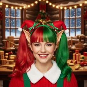 Turn yourself into one of Santa’s cheerful elves! Style your hair into two high pigtails and attach felt elf ears on the sides.
