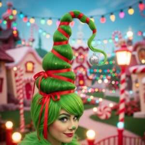 This hairstyle is bold and cheerful—ideal for anyone who loves to go all-out for the holidays.