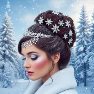 You can style your hair in waves or a bun, then scatter snowflake accessories throughout.