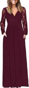 Choosing this AUSELILY lace sleeve maxi dress is the best choice for a winter wedding guest because its soft, stretchy, and breathable fabric keeps you warm and comfortable while maintaining an elegant look.