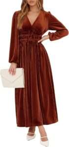 Choosing this velvet empire waist maxi dress is the best choice for a winter wedding guest because its premium knit velvet fabric feels luxuriously soft, drapes beautifully, and keeps you warm while maintaining an elegant, wrinkle-free look.