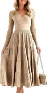 Choosing this long sleeve knit midi dress is the best choice for a winter wedding guest because its thick, high-quality knitted fabric offers cozy warmth while maintaining a chic, elegant look.