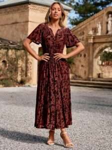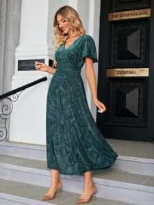 Choosing this semi-formal wrap V-neck maxi dress is the best choice for a winter wedding guest because its soft, lightweight fabric feels comfortable yet elegant, offering a flattering fit that highlights your natural charm.