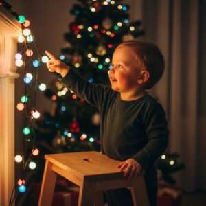 Take a string of lights and encourage your toddler to count each bulb as you decorate together.