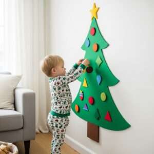 Toddlers can decorate and redecorate the tree as many times as they want—no mess, no breakables, and perfect for practicing hand-eye coordination.