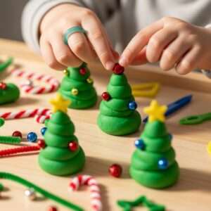 Add safe accessories like plastic beads, pipe cleaners, or tiny cookie cutters so they can decorate their trees.