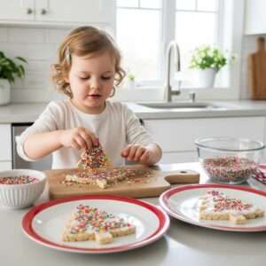 This builds sensory exploration and introduces early cooking skills while creating adorable festive snacks.