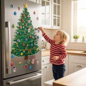 This turns your fridge into a holiday activity center and gives toddlers a reason to play nearby while you cook or bake.