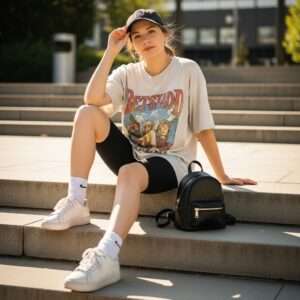 A TikTok favorite — oversized tees with biker shorts are comfy, breathable, and effortlessly stylish.