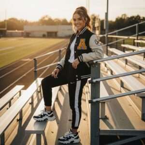 Channel sporty vibes with a varsity or bomber jacket paired with joggers.