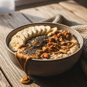 This protein-rich winter breakfast blends mashed banana with creamy peanut butter for a naturally sweet, velvety bowl.