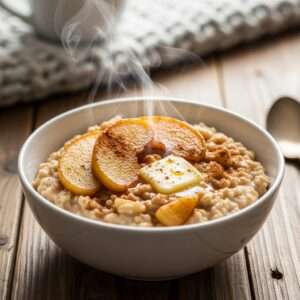 This oatmeal simmers rolled oats with diced apples, brown sugar, and cinnamon until creamy and fragrant.