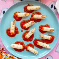 Turn regular mozzarella sticks into creepy “fingers” by using almond slices as fingernails and marinara as the “bloody” dip.