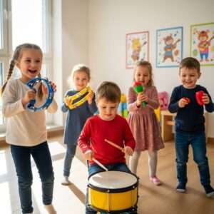 Simple instruments like shakers, tambourines, or homemade drums provide opportunities for experimentation and self-expression.
