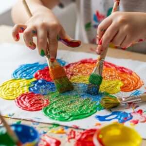 Using materials like finger paints, textured paper, sand art, or even edible paints encourages children to experiment with colors, patterns, and textures.