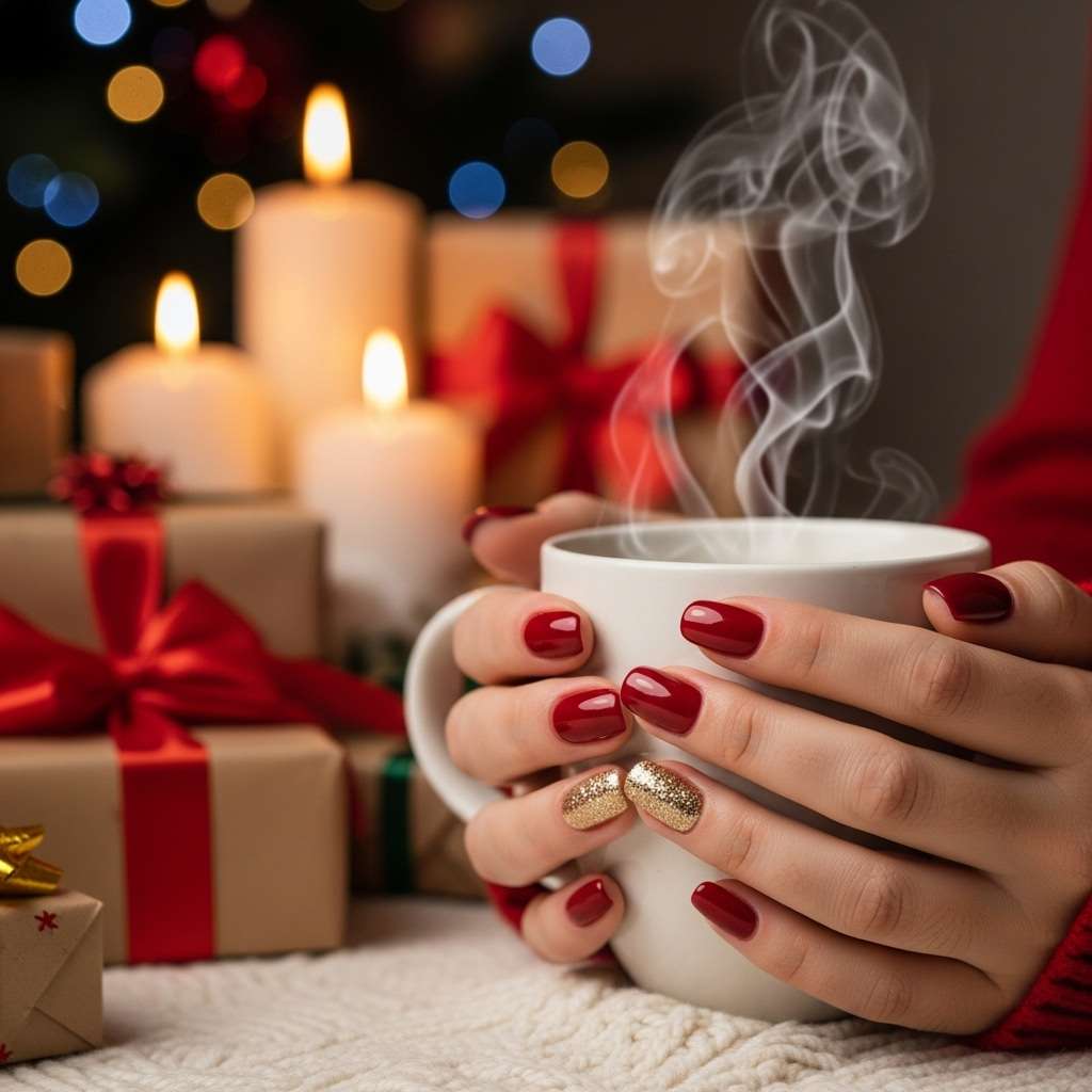 Nothing says Christmas quite like red nails. Whether you love classic cherry red or deep crimson tones, red manicures are