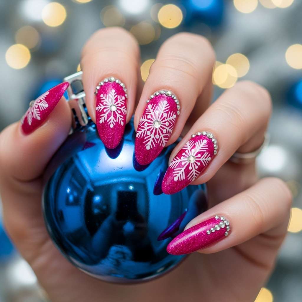 If you’re dreaming of a pink Christmas, these 12 pink Christmas nail designs with snowflakes are just what you need.