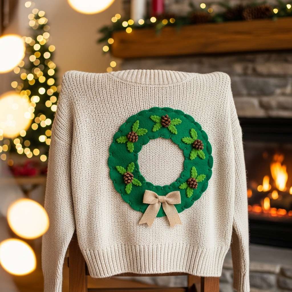 Ugly Christmas sweaters are a beloved holiday tradition, and adding a DIY wreath design makes them extra festive and eye-catching.