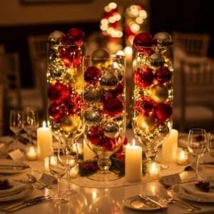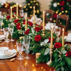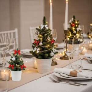 Add candles for warmth, greenery for freshness, and ornaments for sparkle — and your guests will feel the holiday magic from the moment they sit down.