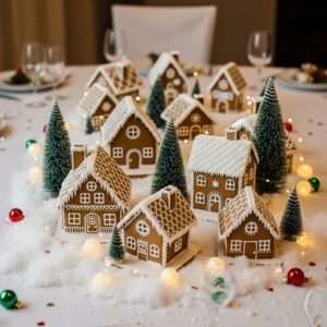 Add a touch of nostalgia and whimsy with a gingerbread village centerpiece.