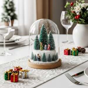 Use large glass domes or cloches to cover small Christmas figurines, mini trees, or a single red rose surrounded by faux snow.