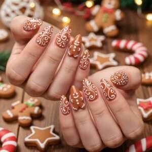 Sweeten your holiday look with gingerbread-inspired almond nails.