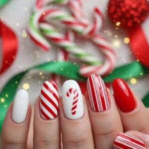 Bring the sweetness of the holidays to your fingertips with red and white candy cane stripes.
