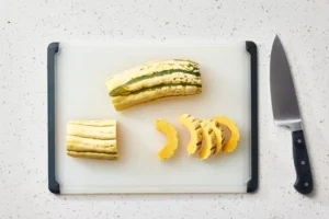 Unlike butternut or acorn squash, it’s softer and easier to slice—no need to wrestle with a knife.