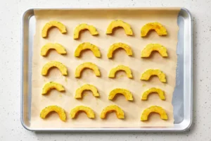 Arrange the slices in a single layer on your baking sheet. Roast for 20–25 minutes, flipping halfway through, until the squash is golden brown and tender.