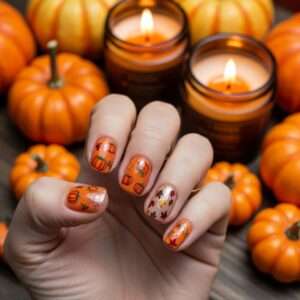 Celebrate the season’s most iconic symbol with pumpkin-themed nail art.