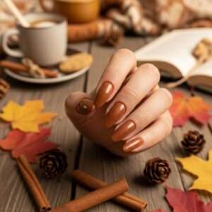 Inspired by your favorite fall drinks, cinnamon-toned nails give a warm and inviting feel.