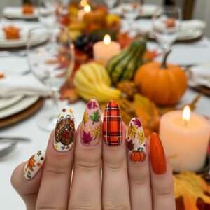 Think turkey designs, fall leaves, plaid prints, or even mini pumpkins.
