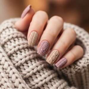 Using 3D gel polish, nail artists can create raised patterns that look like knitted fabric.