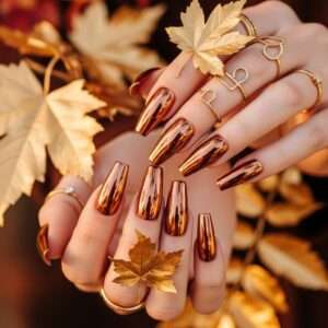 This metallic finish reflects light beautifully and adds a modern twist to your fall manicure.