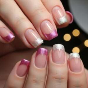 Alternate between pink nails and silver glitter nails, or use both colors in an ombré style.