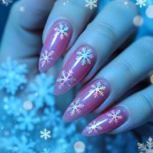Whether you love glitter, chrome, or matte finishes, these pink snowflake nails will give your manicure a frosty and fabulous upgrade.