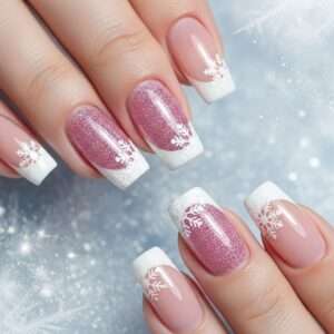 6. Sparkly Pink Tips with Snowflakes